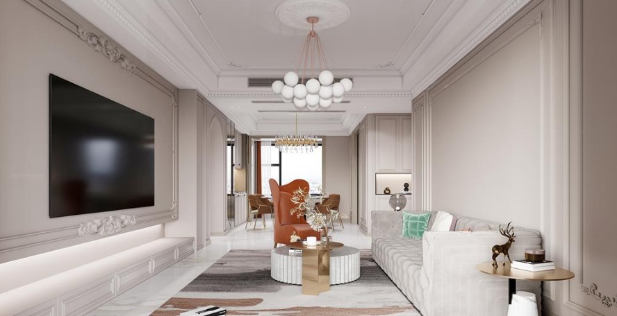 在色系的运用上,大部的色调以浅色作为主色调,稍微用亮色进行点缀,给空间增添 许多生气和温度。在造型设计挑选层面,一般的法式轻奢设计风格都是加上曲线图,它是欧 式原素里经常可以看到的一种设计方案,而且还融合了几何图形架构和方正矩形框的造型设 计,那样使全部设计方案越来越刚中带柔,恰得益处