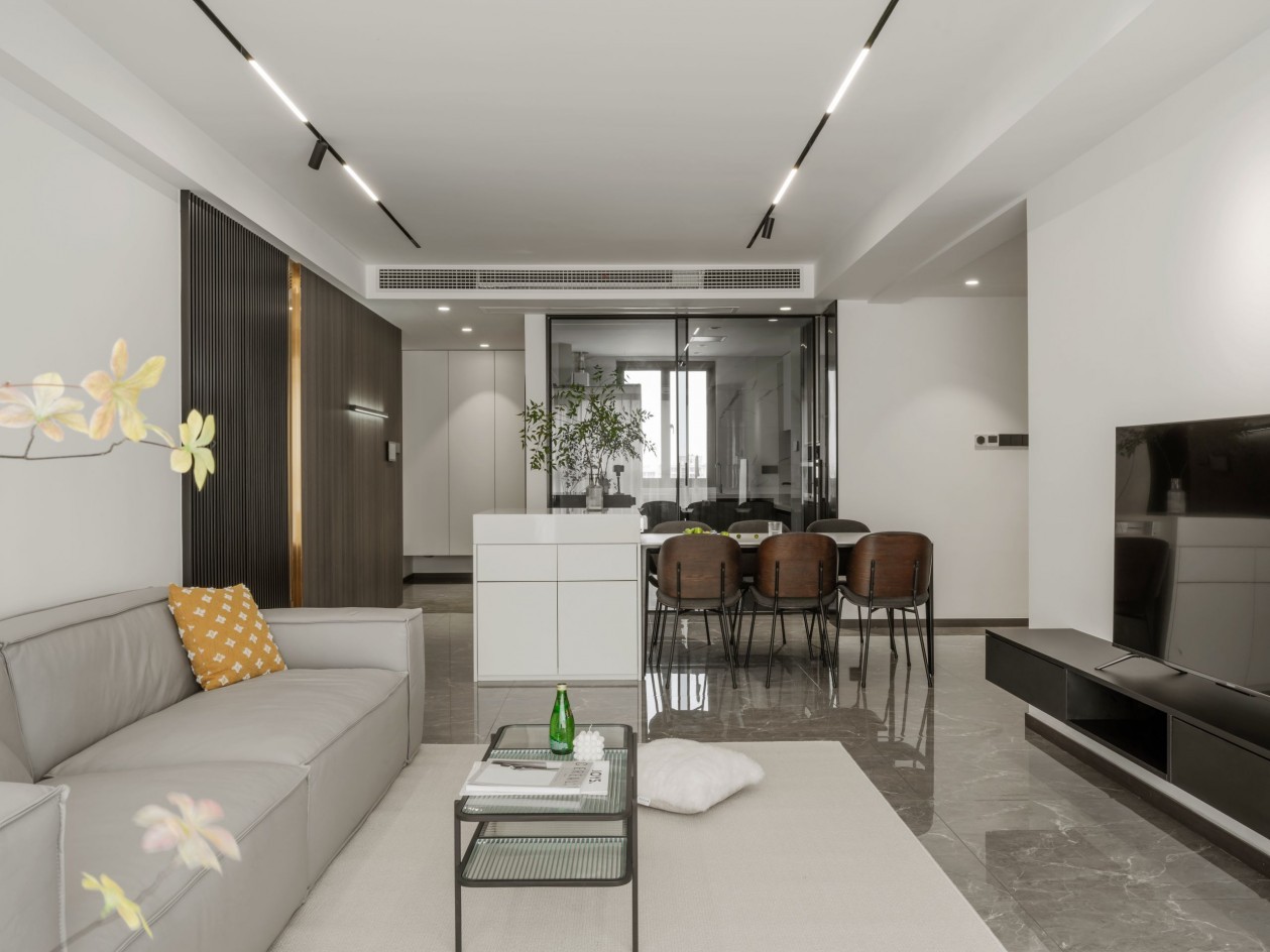 餐厨一体打通空间,让视觉和光线更开阔通透;西厨岛台以及餐桌一体化定制,四周动线更合理,功能更加强大,与空间整体协调更有范