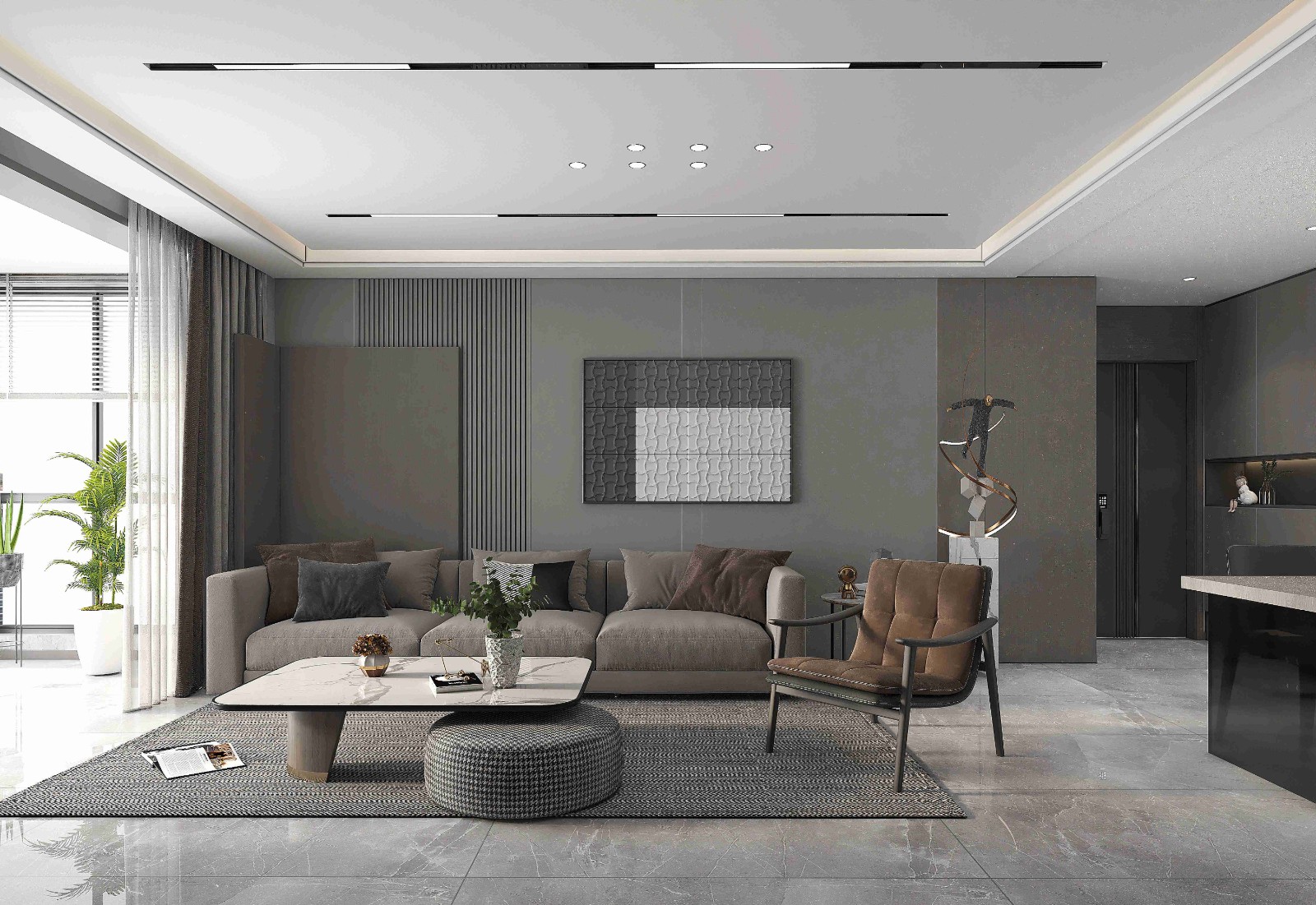 无主灯设计和沙发背景墙暗藏式灯带让空间更具层次感,若隐若现,层次分明。