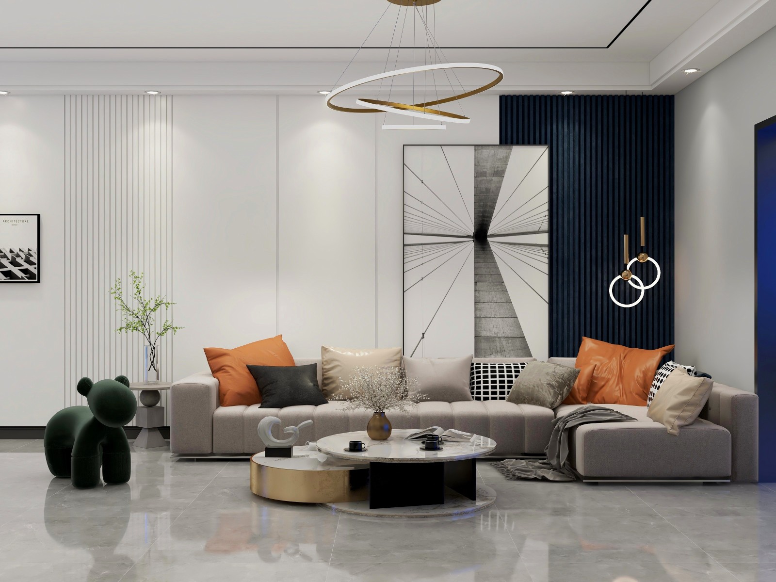 客厅以线条为主的背景设计,简洁干练与业主性格一样