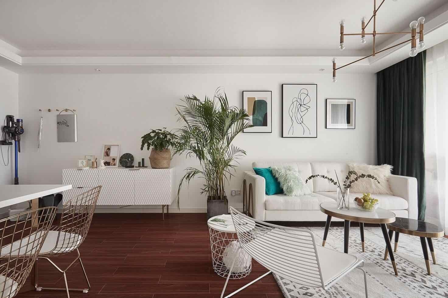 与很多客厅在近阳台位置不同,我们把客厅放在更靠近进户门位置,避免落地窗户阳光过于强烈,影响观影感受,沙发左侧柜体除了用于日常储藏,也与卧室隐形门形成对称式造型,藏匿隐形门效果更