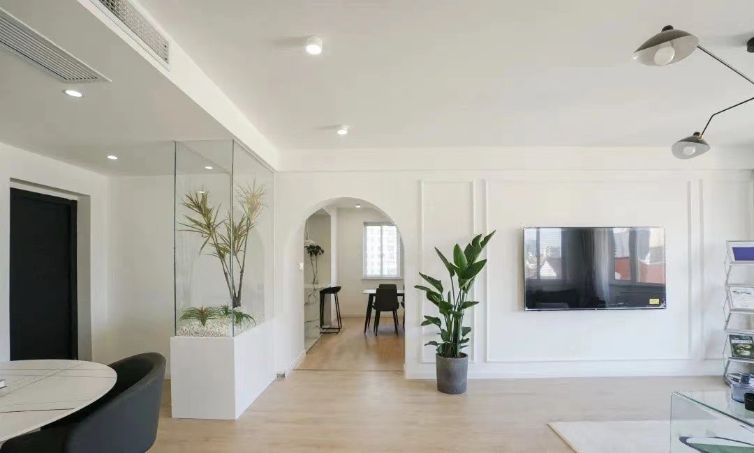 创意的玄关隔断,也不失为门厅的一个景观,在阳光充沛的时候,透过玻璃折射的光,再点缀一些绿植,整体都显得活泼清新很多。