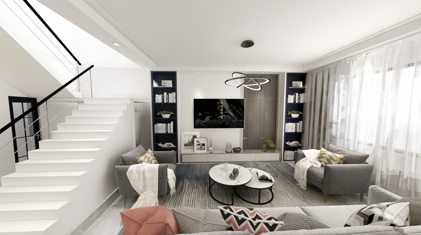 现代轻奢风格虽也是现代风格一种,但是与传统的现代风格不同的是,现代轻奢在色彩运用上面对比鲜明。常用***黑与***灰做为表现,给空间一种利落感觉。