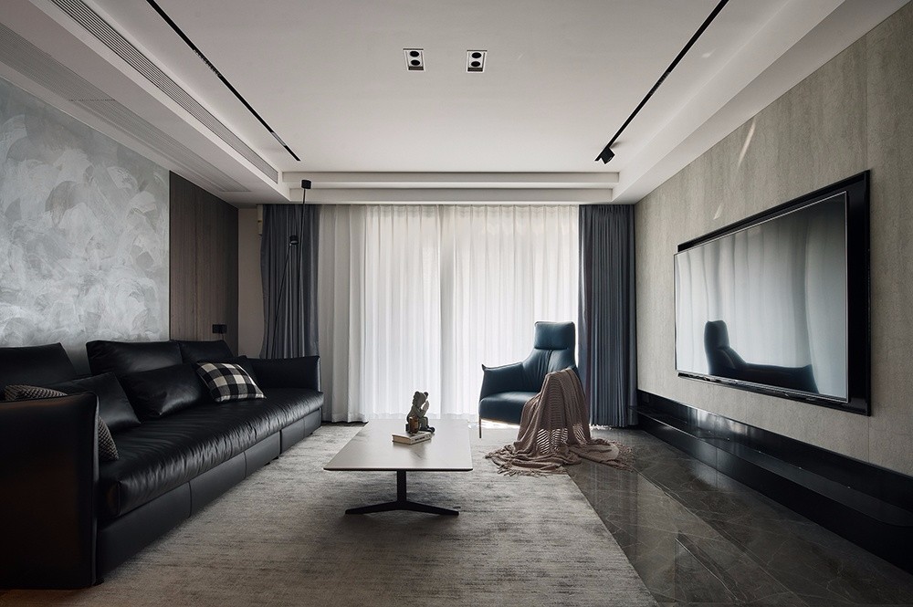 客厅以现代简约的设计手法,打造出一个温暖静谧的质感空间,沉稳视感的家具单品,围合出舒适的起居中心