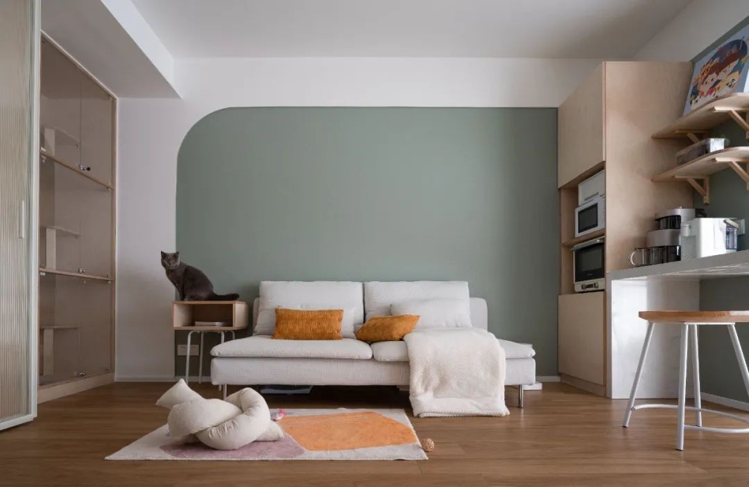 原先餐厅的位置增加一组猫舍收纳跟猫咪的生活起居——猫厕所
