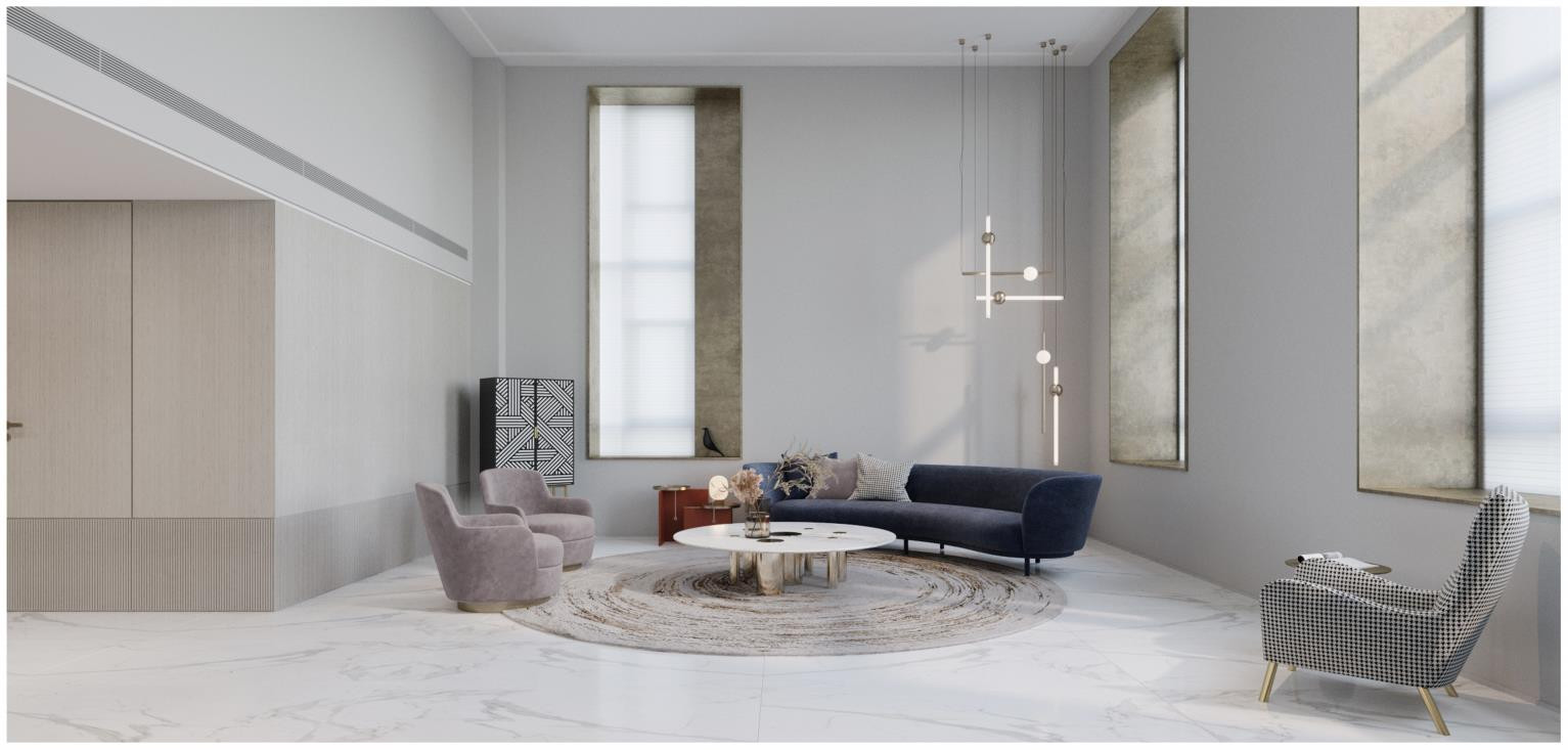该户型是善见豪山的复式户型,整体风格以现代白色系为主,主要营造出通透与雅致的氛围。