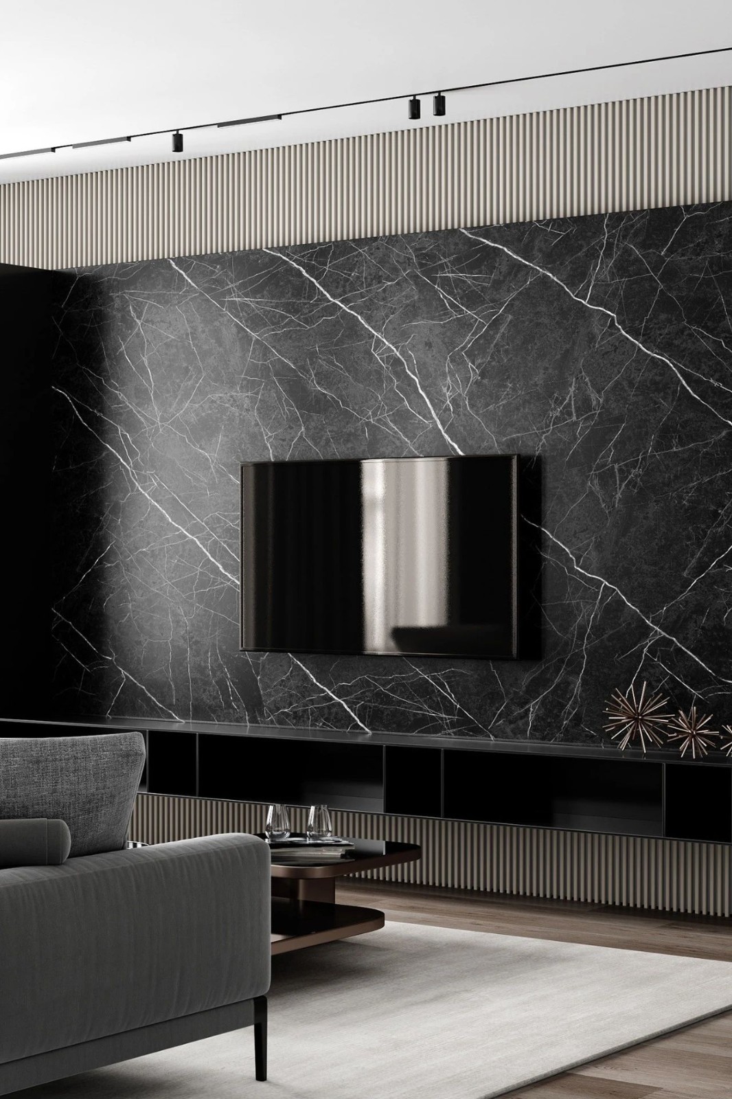 卧室背景墙以格栅造型围合,既是一种设计感的凸显,也是一种场景的渲染。