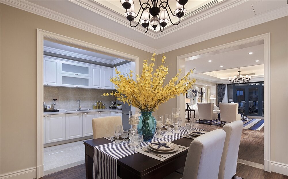 开放式厨房的设计让空间看起来很大,灶台是L型的