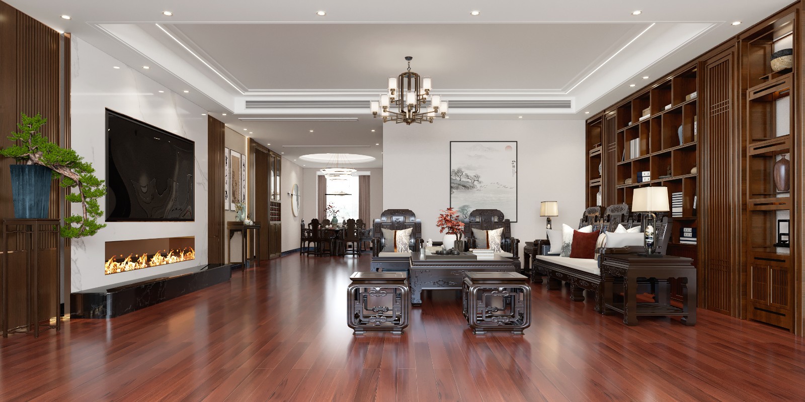 融合东方美学与现代家居造型,以实木装饰出典雅古朴的新中式风格,大气而优雅,中式家居美感尽显其中。