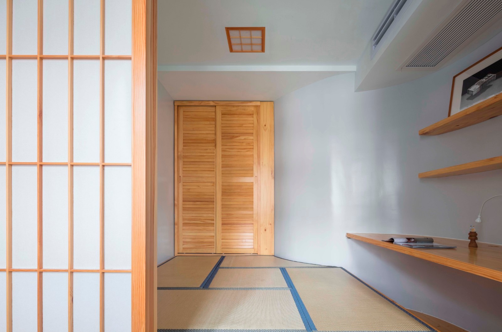 两种不同的功能在同一空间的不同时间中存在。既是书房亦可做次卧的榻榻米空间,为空间使用者的行为增添了大大的可能性。
