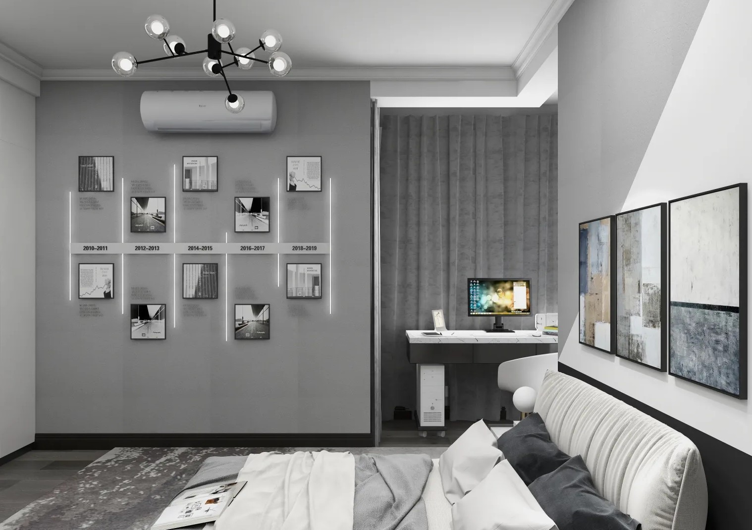 电视背景墙没有做什么造型,采用乳胶漆分色的方式,打造出一个不一样的背景墙。