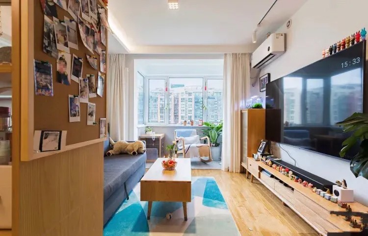 阳台不装玻璃隔断,扩大使用功能,也让餐客厅采光得到更好的改善。