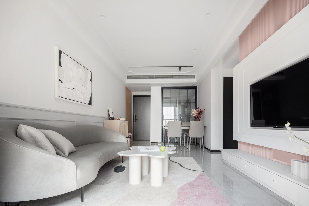 我们将内阳台改造成了两人同时使用的独立书房,成功令三房结构变成了四房,满足业主使用需求。室内整体以白色+***灰为基底,局部脏粉色装点,运用艺术漆、栅格、石膏与布艺等多种材质,在线条与纹理之间有序交叠,生活的温暖与质感也随之升温。