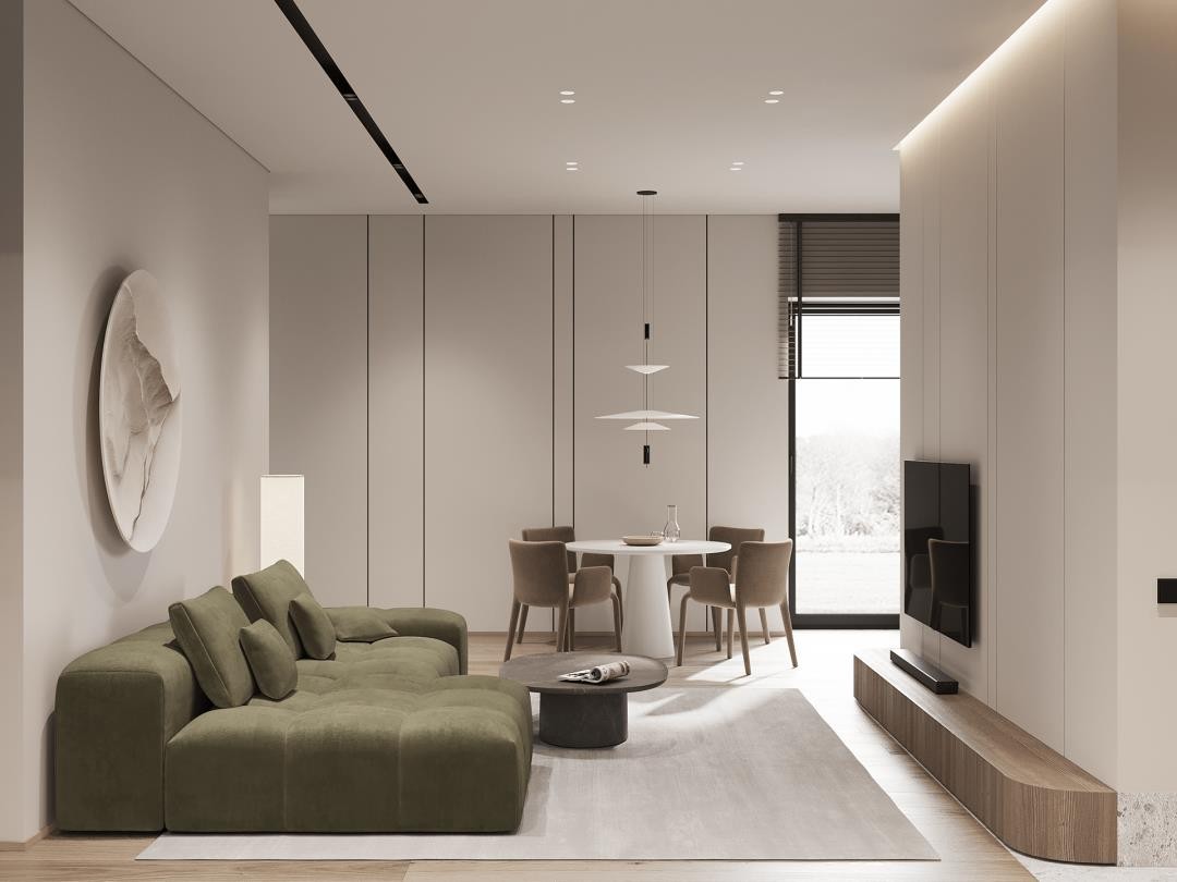 门厅处的水磨石地砖铺贴方便了日常的打理,木色和浅灰色的背景墙相互衬托,更显得雅致、大气。客厅整体采用了一种静默感的色彩,将现代风格的时尚干练与光洁质感,融入简约的典雅氛围,木色的优雅在恬静灰调中轻盈勾勒,呈现出简约的都市品味!