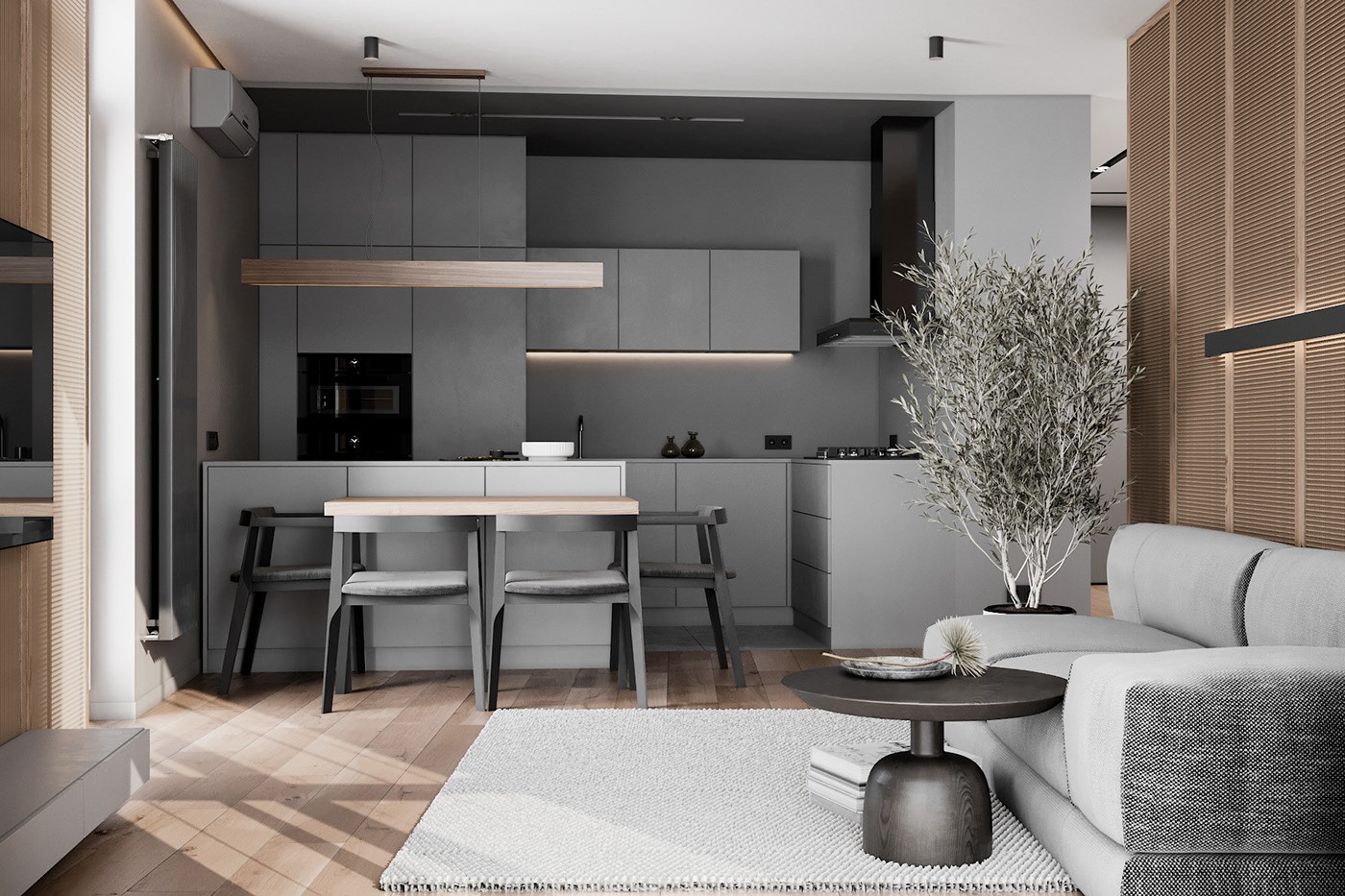 无阻隔的设计串联起不同功能区,和谐的色彩搭配构筑惬意的居家环境。