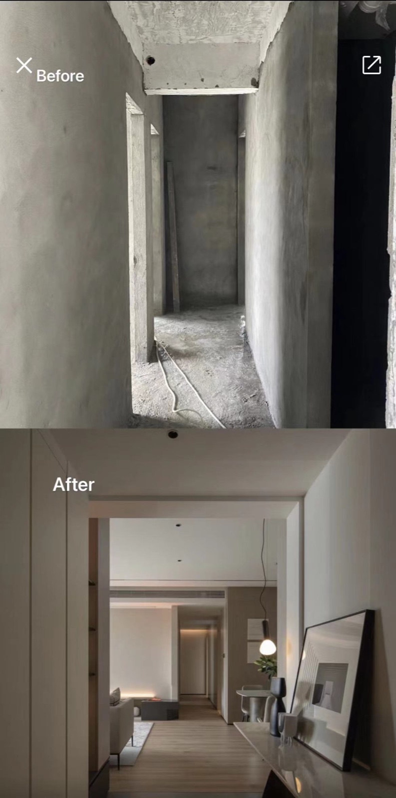 客厅装修前后的实景对比图