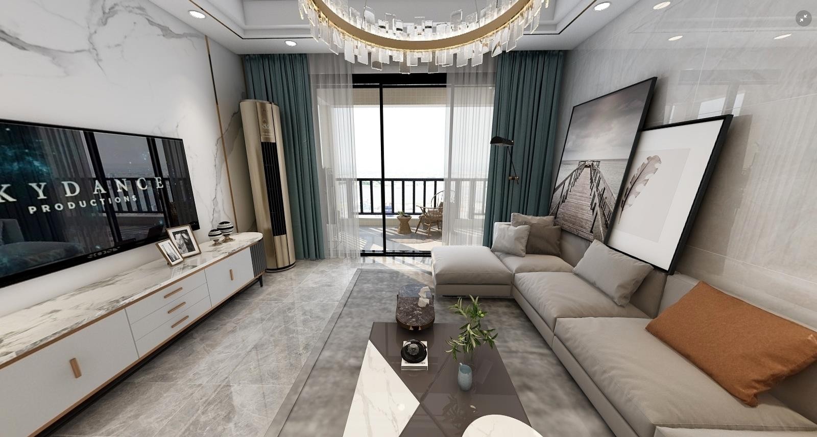 客厅与生活阳台实用美观,又增加了整套房的通透性。