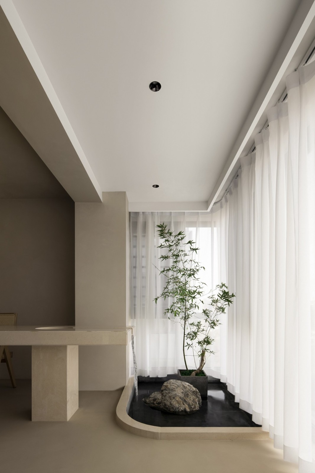 台面与景观为一体的设计,让在此品茶的人感觉室内外相融的自由的生活