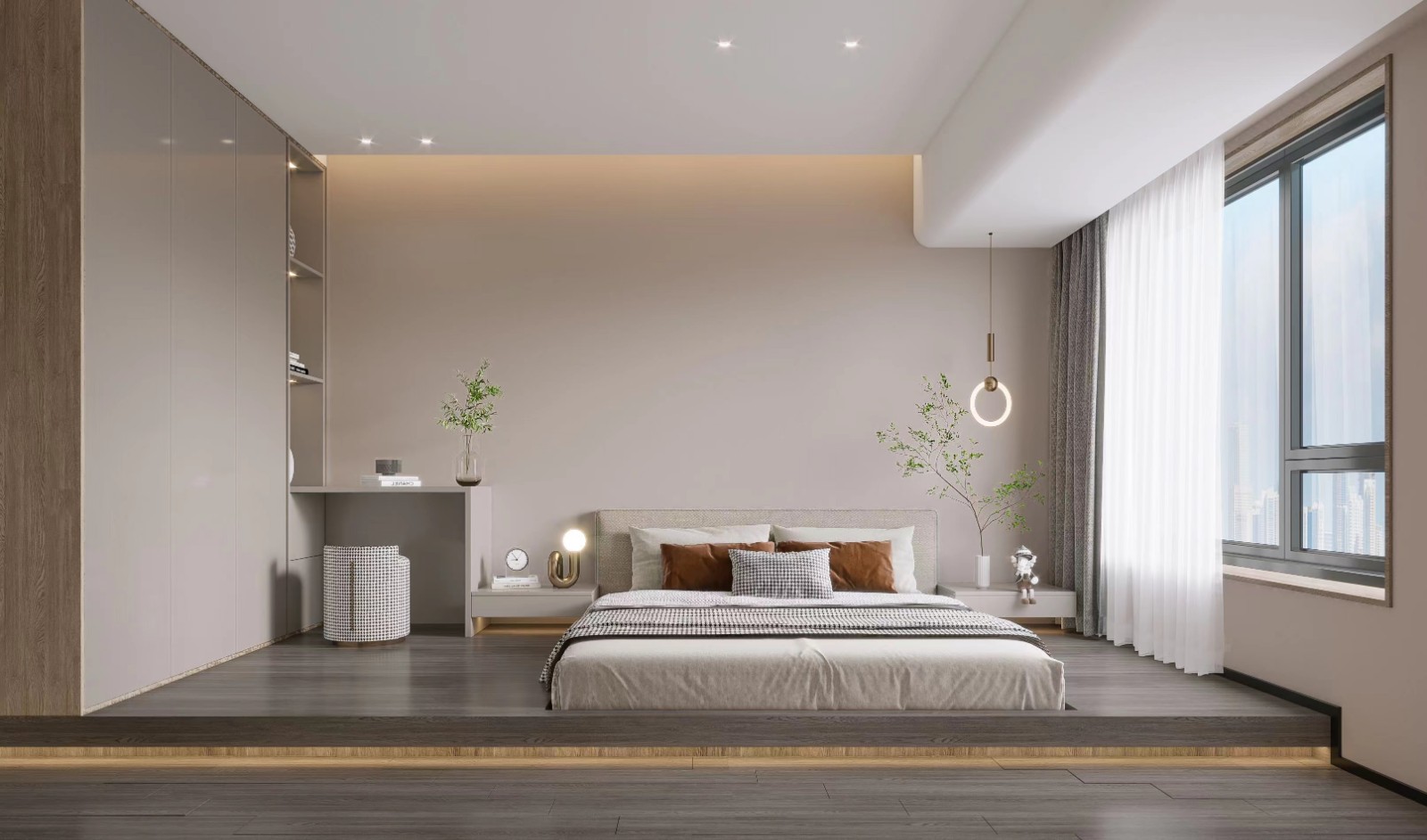 主卧室地台式设计实景落地床头柜