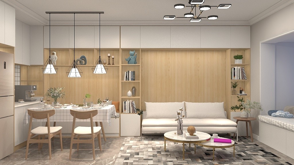 业主是一对新婚夫妇 喜欢北欧风格 由于户型为一居室 储物空间不是特别的理想因此要求设计师在设计上增加储物功能以及要有设计感。