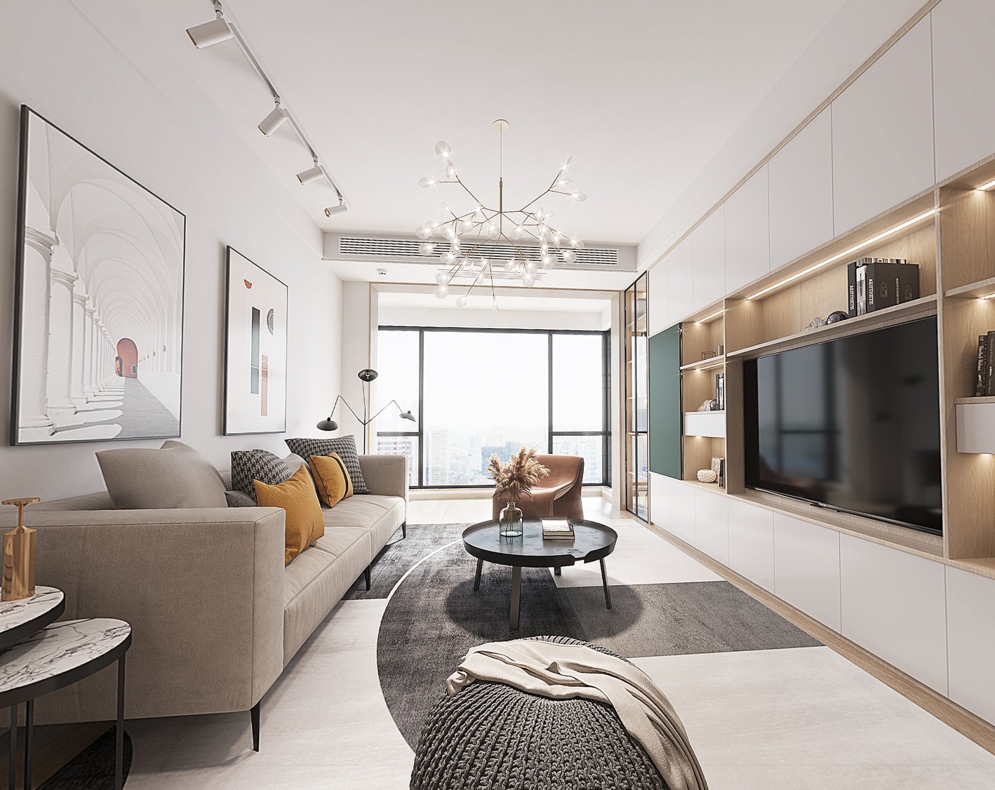 此房子原户型为二居室,因为他们是一家五口居住所以需要多一间房的设计,和我们交接的是位孕妈妈,小孩即将出生,家里还有一个小朋友,她在装修设计期间花费了不少心思来考究方案,经过公司设计总监和设计师跑了好几趟后面才敲定此方案和设计