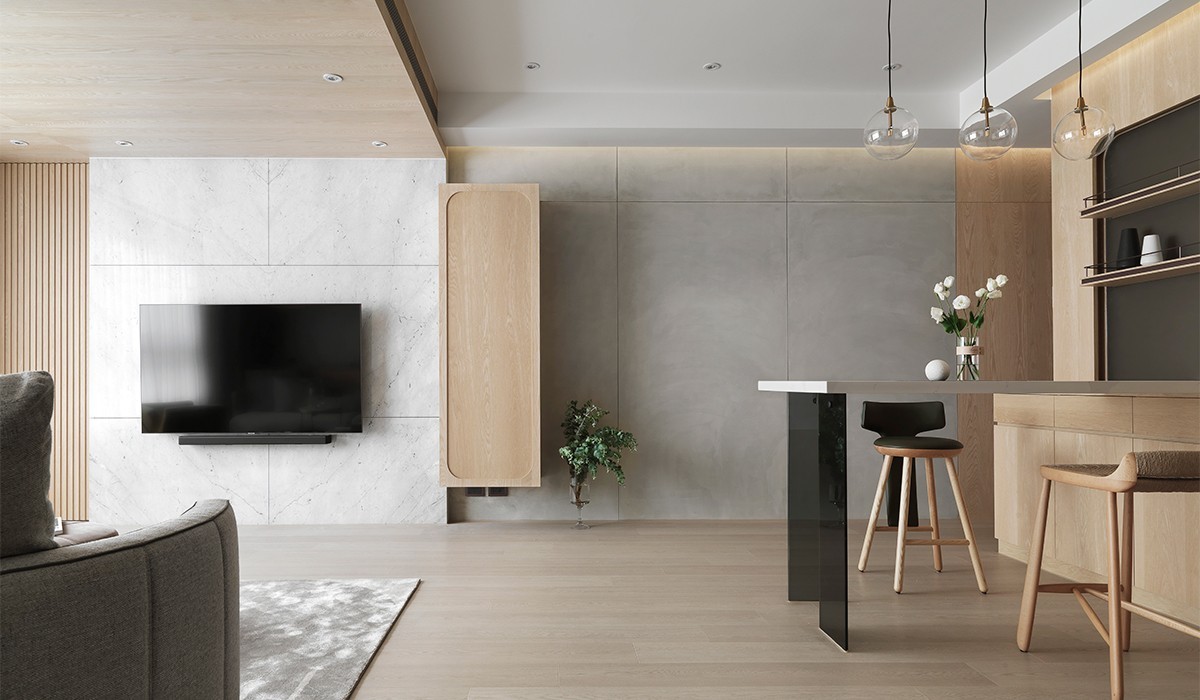 掺揉一抹墨灰稳定视线重心,使身心灵归於平静,在审视格局条件后,隔出一方独立衣帽间,使硬体退出寝室范围,释出一片自在餘裕。