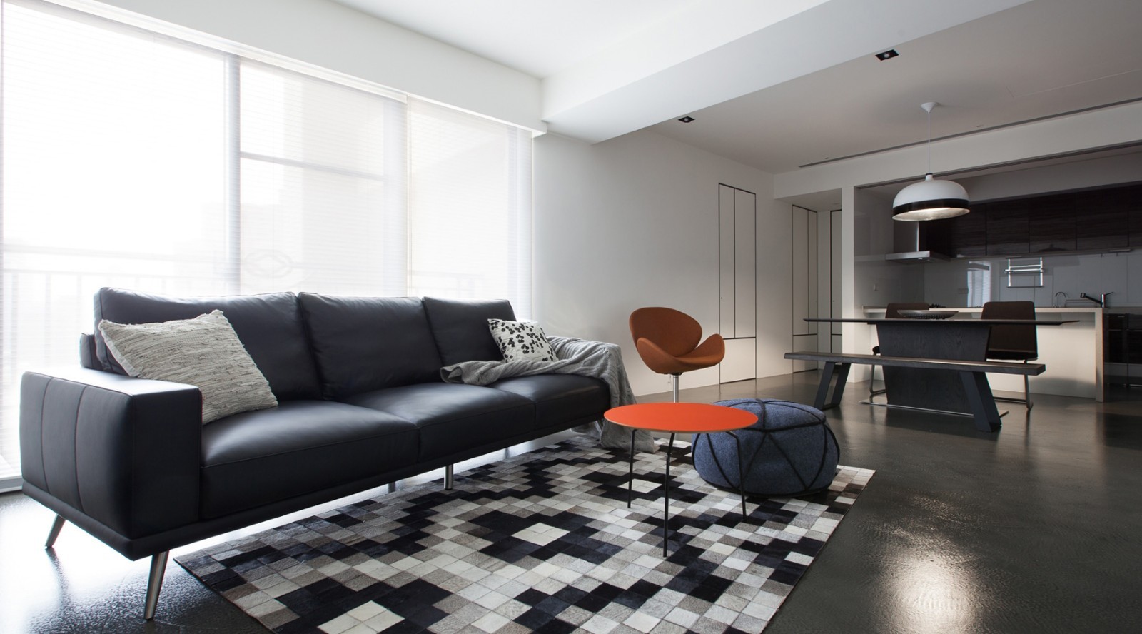 黑色的餐桌,与地板的黑色搭配,既简单又大方。