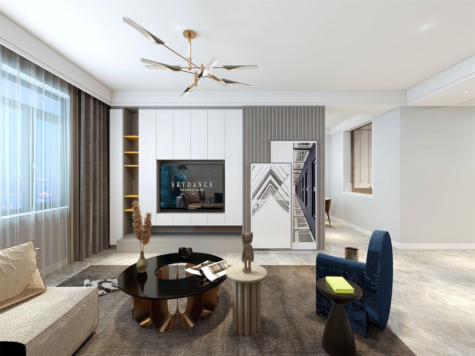 电视墙为了给餐厅区让出冰箱尺寸外扩30公分