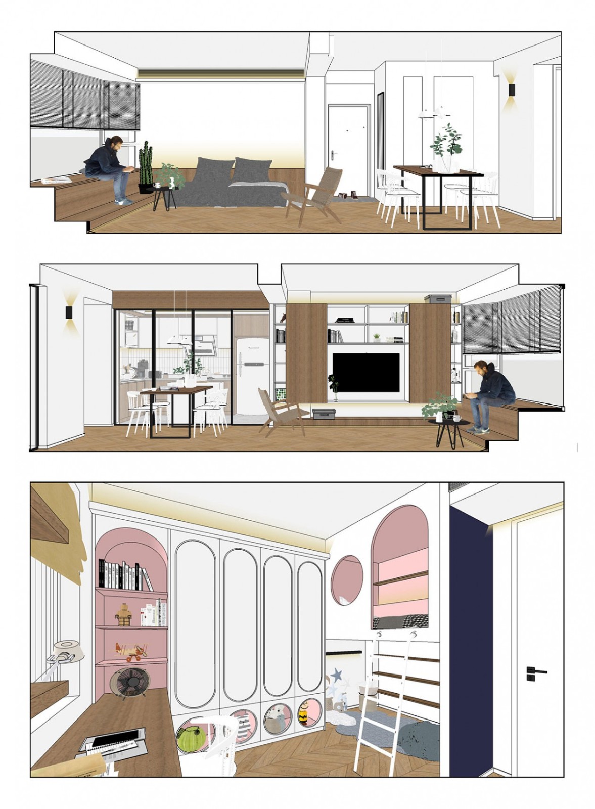 尽管如此,要在89㎡的建筑面积里承载三代人的日常起居多少还是显得有些不胜从容,为了让这间房屋更加符合业主及家人的使用需求,我们通过解构、重组,打破原有格局,塑造这个家的全新性格与表情。