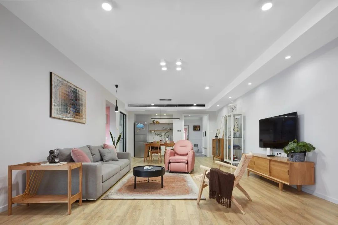 原来的客厅会稍显局促,所以,将阳台空间纳入客厅,并采用了小云最爱的粉色作为跳色。