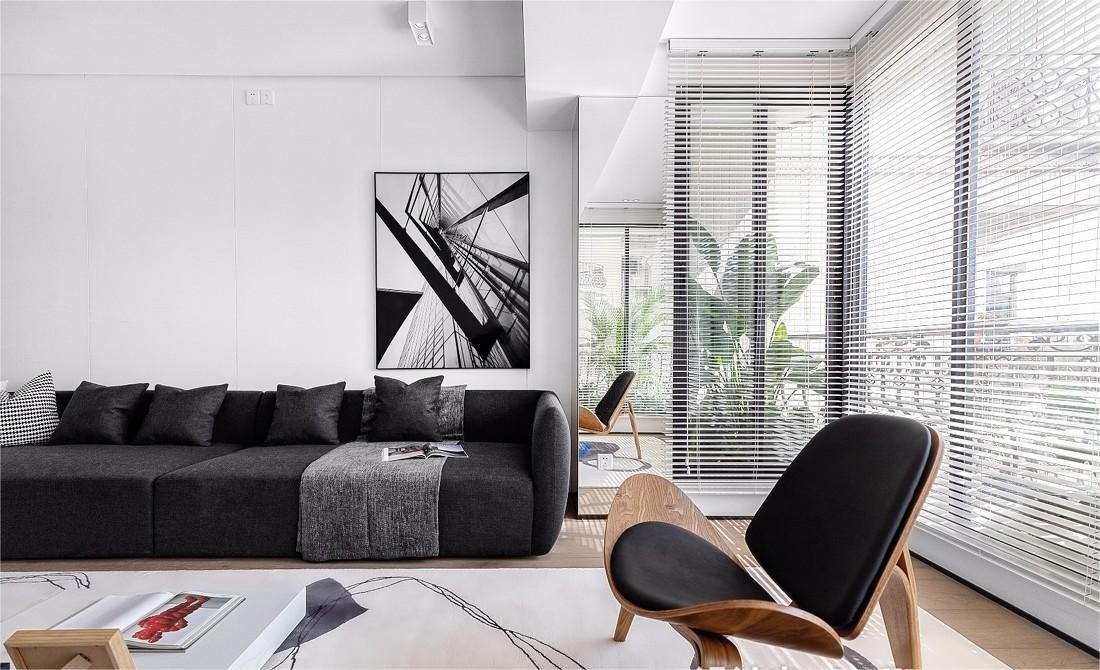 厨房与户外原本是隔着一个生活阳台,很小很挤,为了是厨房的光线及风能够更好的吹进厨房,设计师在保持原先管道不改动的基础上将厨房往外推,不仅扩大了厨房的空间,为了与整个空间的色调协调,依旧使用白色的橱柜。
