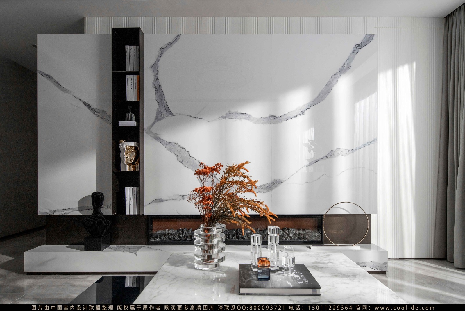空间主体色调取自冬季的雪,将浅灰、咖色为主题色调,被赋予阳光“冬”的暖白;结合绒布与金属为点缀,闪亮的水晶装饰浪漫轻盈,更是对冬季主题增加了温暖与柔和。