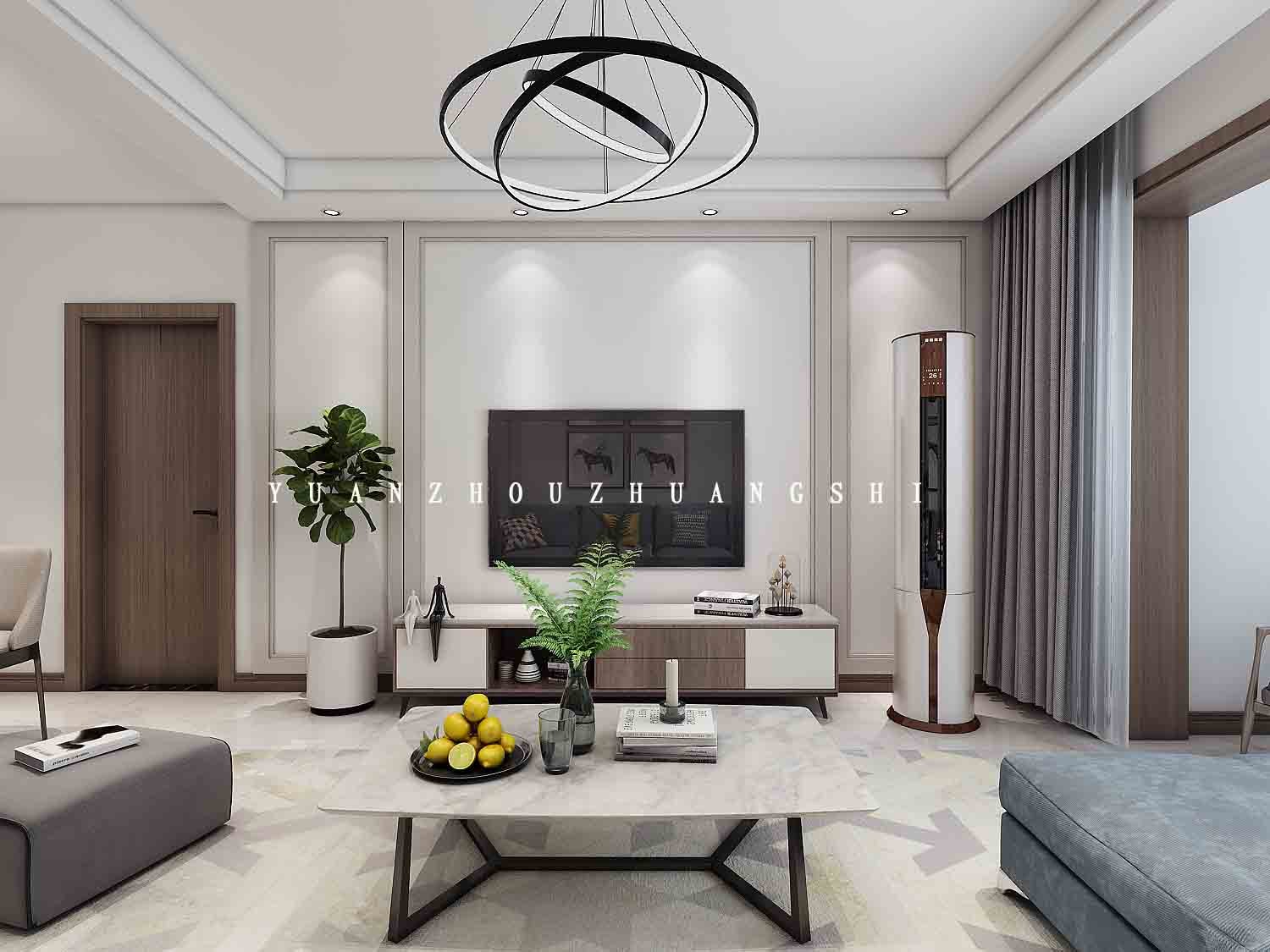 客厅简约中带着干练,整体中性的色调,非常耐看。