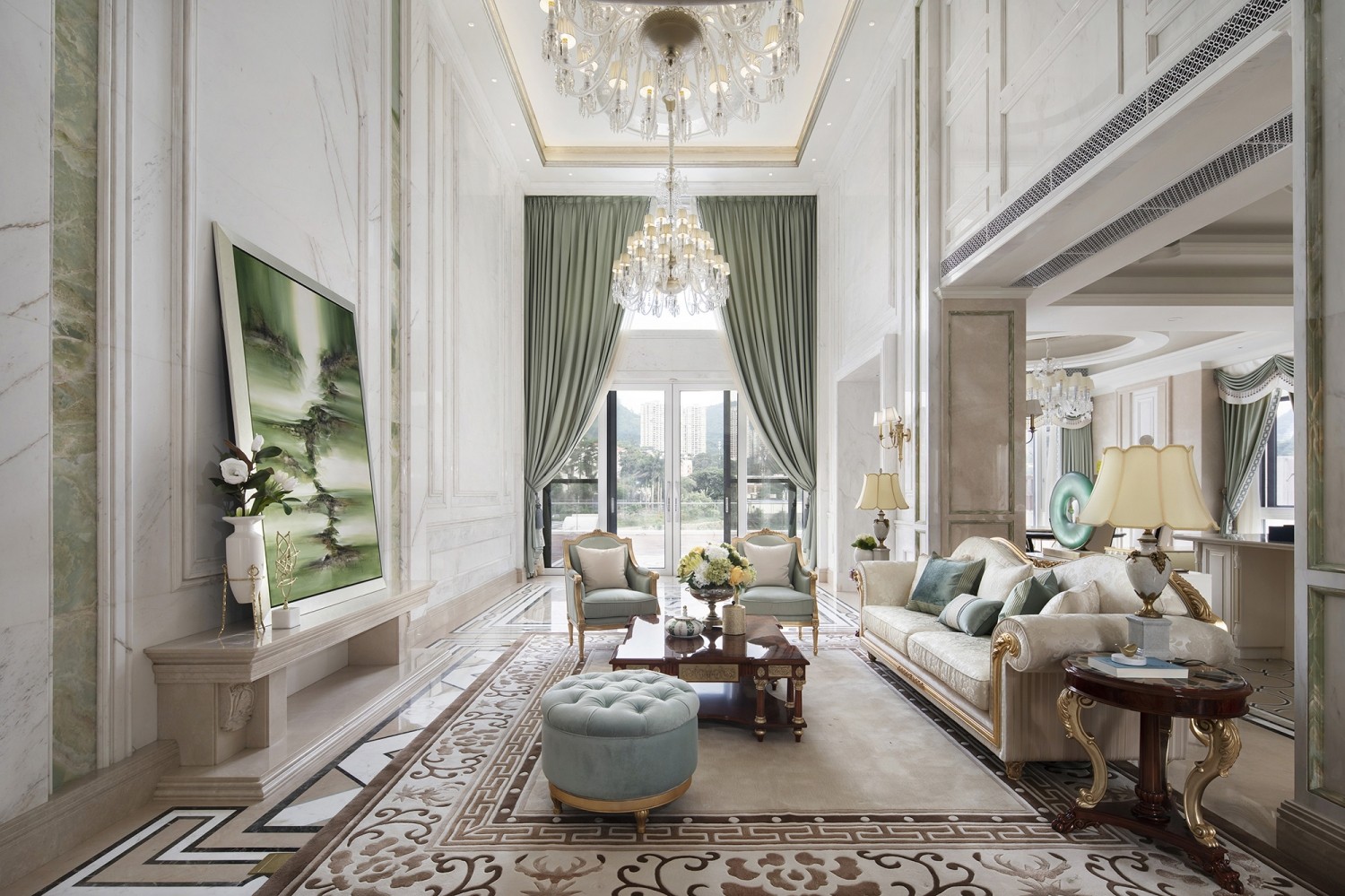 空间的色彩层次与艺术韵律相互映衬,丰富着顶豪人群美好生活的每一次场景定格,将法式优雅气质与浪漫情调演绎到***。