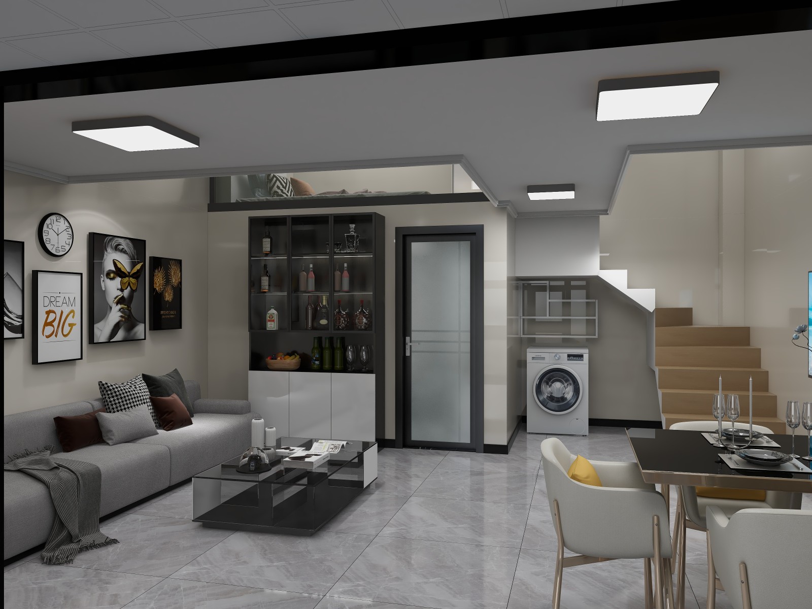 客厅舒展,配合中空,现代感太强了