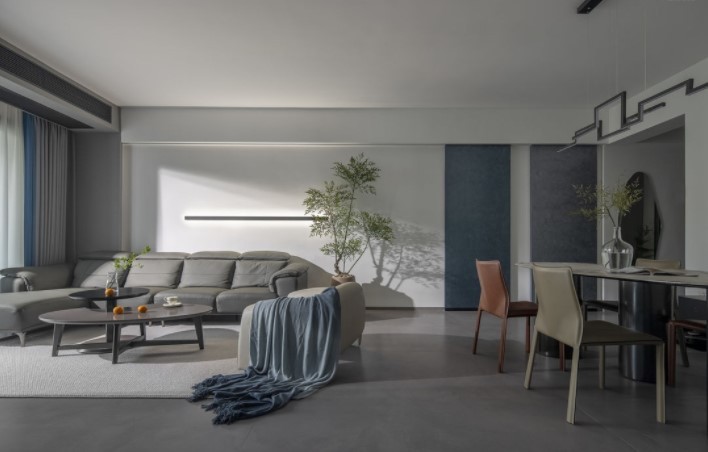 黑白灰是客厅的主题色,拥有清冷干净的气质