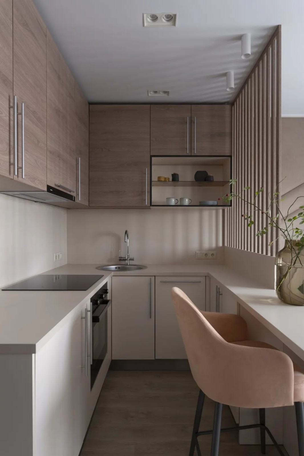 与橱柜一体的餐桌,显得整体,并不影响使用