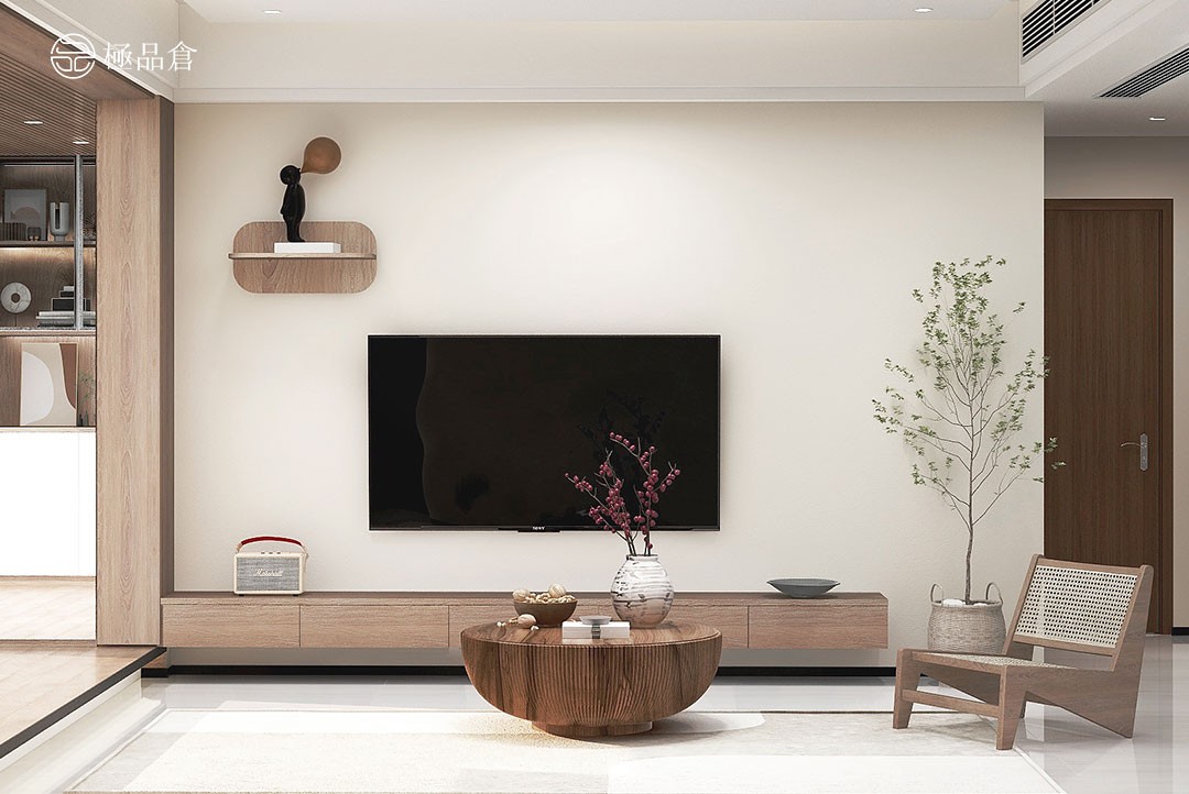 大白墙、无主灯的装修设计,是简约风一大特点。客厅的软装上以素雅为主,给人整体感觉舒适惬意。