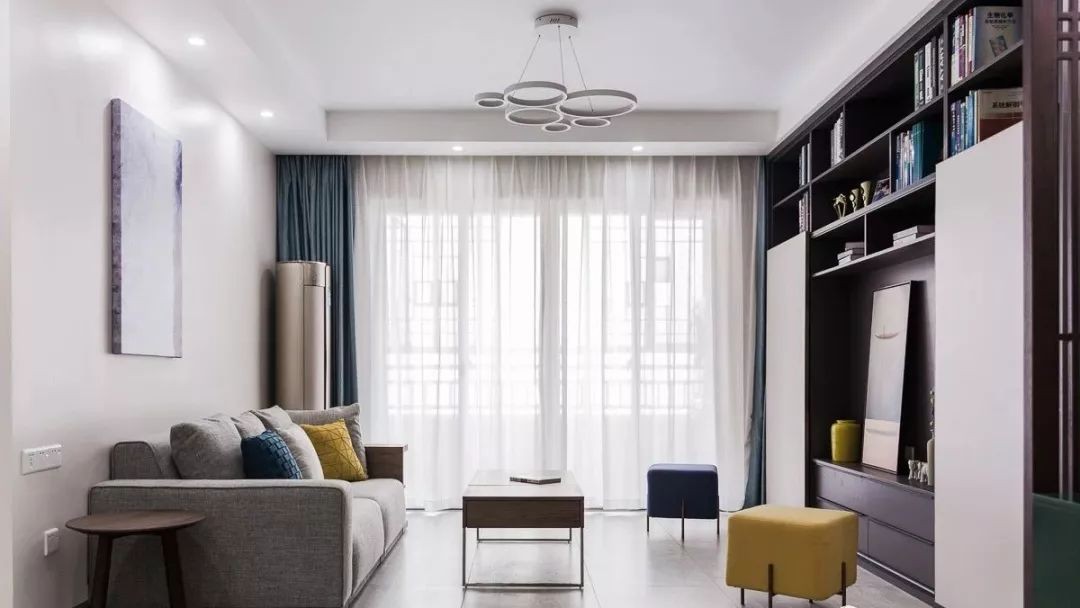 虽然开门就见厅,但是一个简单的木质格栅和精致的斗柜就化解了风水上的尴尬,很是巧妙。