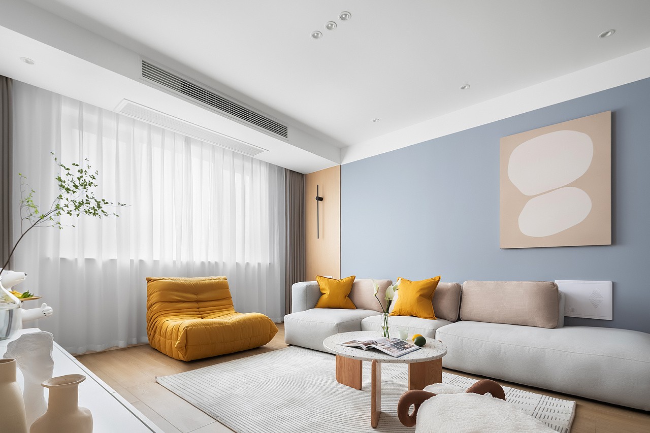 客厅以蓝色为背景搭配给人一种强心脱俗的舒适