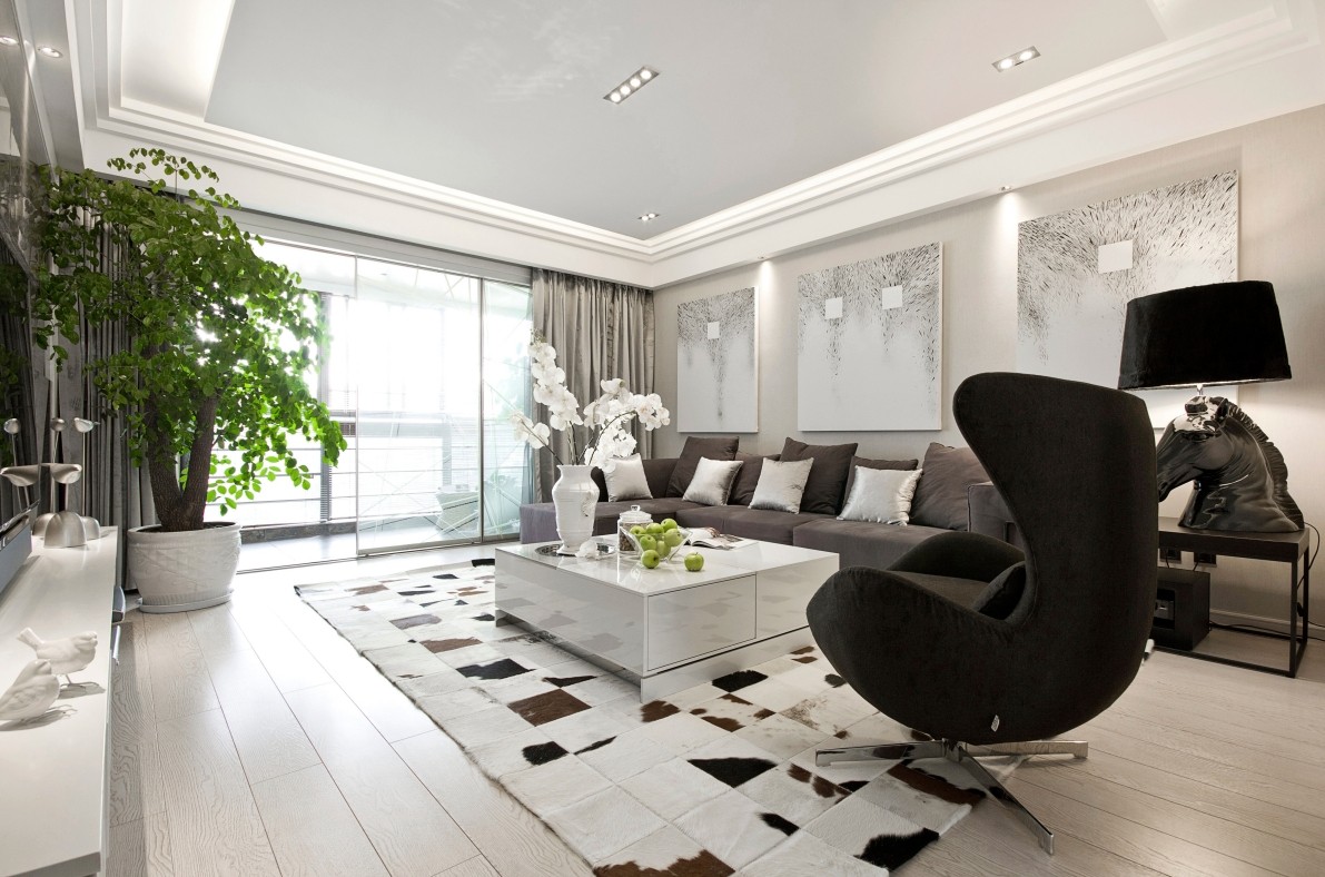 客厅墙面都是大面积以奶白色为主,在采用深点的奶咖色在电视墙面作为辅助色,给原本单一的空间增加了层次感。