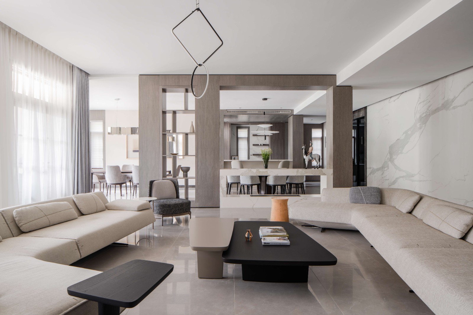 客厅配色简单大气,运用不用的材质增加质感