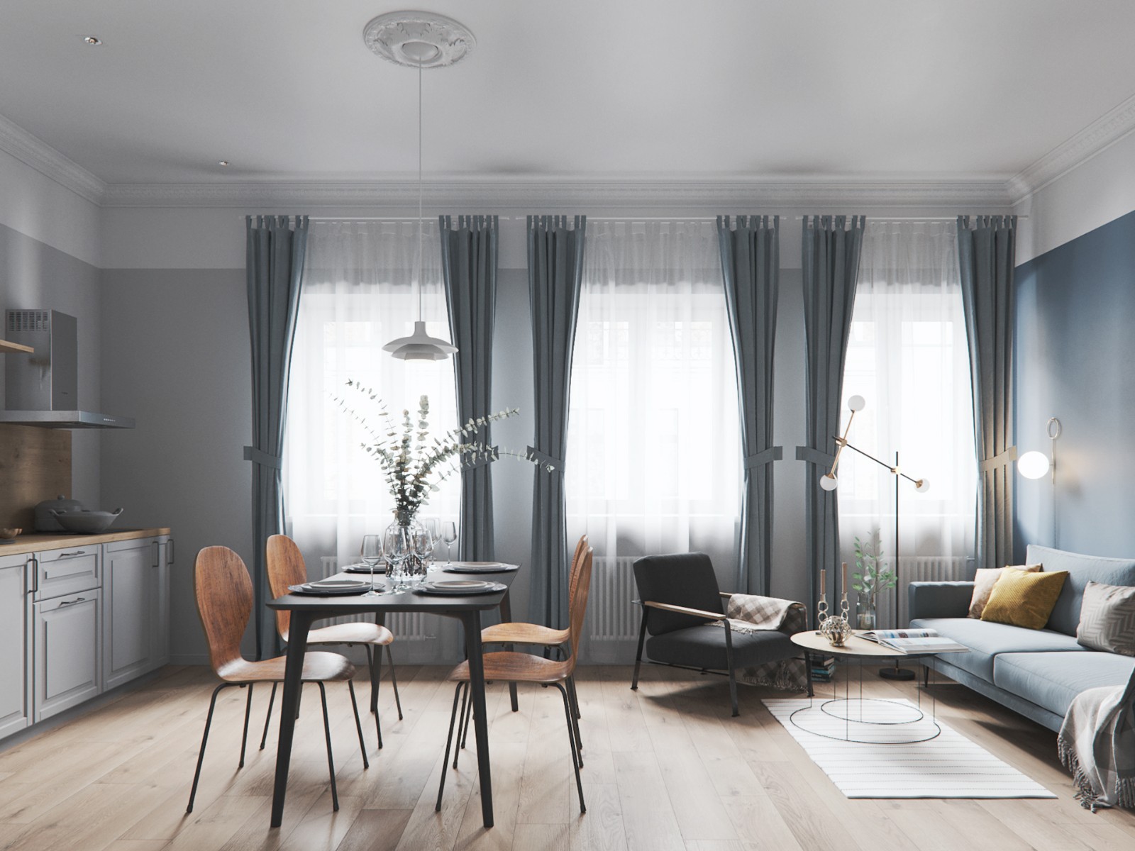 本案常住人口是幸福的一家三口,夫妻二人共同喜欢的颜色就是纯净的浅蓝色,所以我们以此为主色调。对于风格,他们希望装修效果要兼具艺术的美感和生活气息,而且既要有北欧原木铺砌的纯净自然,又要有美式线条勾勒的大气精致,而且要尽可能的简洁轻快。设计师糅合了户主所有的想法,将所有元素融入设计,效果令人惊艳。