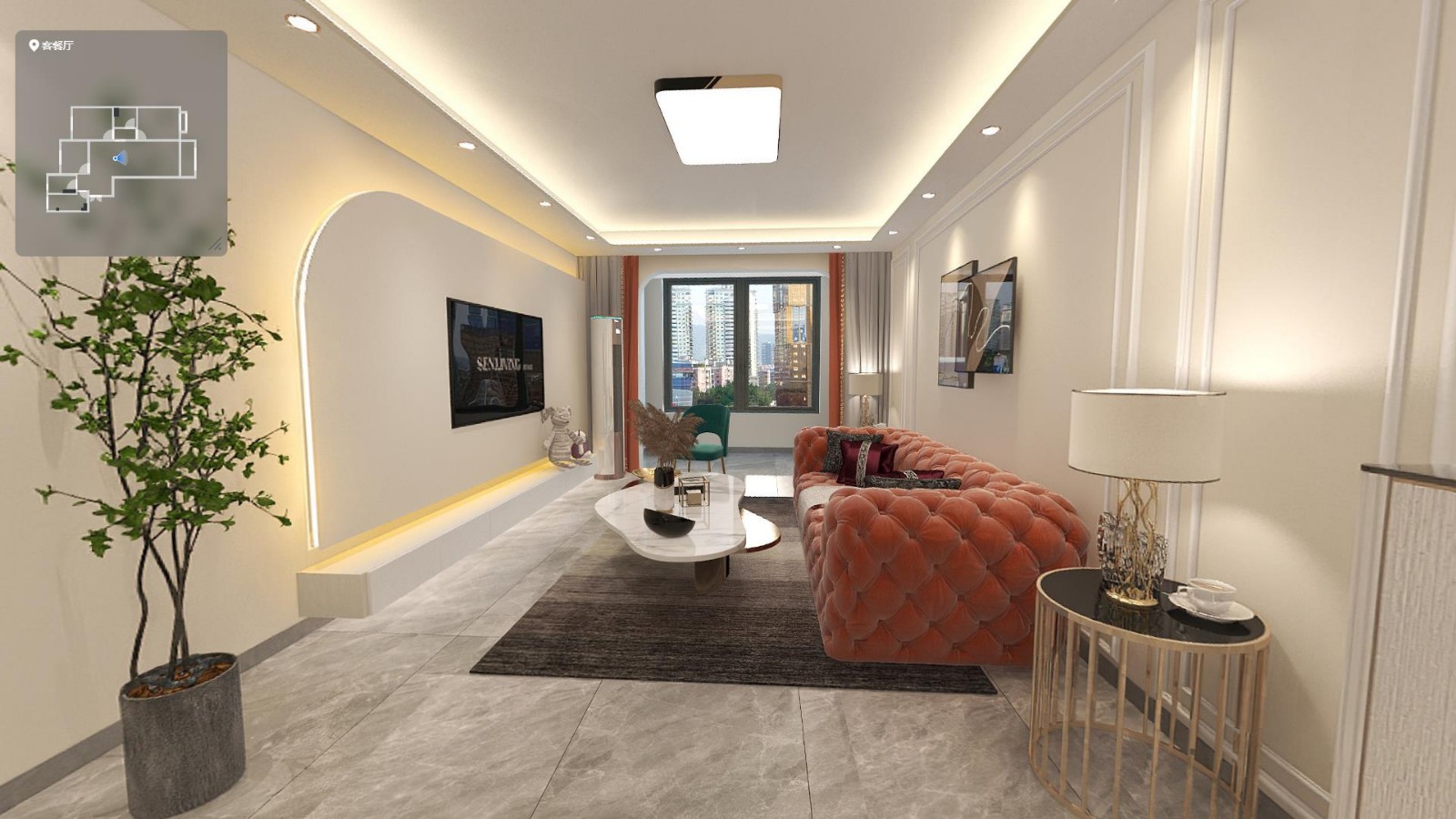 客厅的色差也非常重要,灯光要用暖光和冷光交替,这样更有层次感。