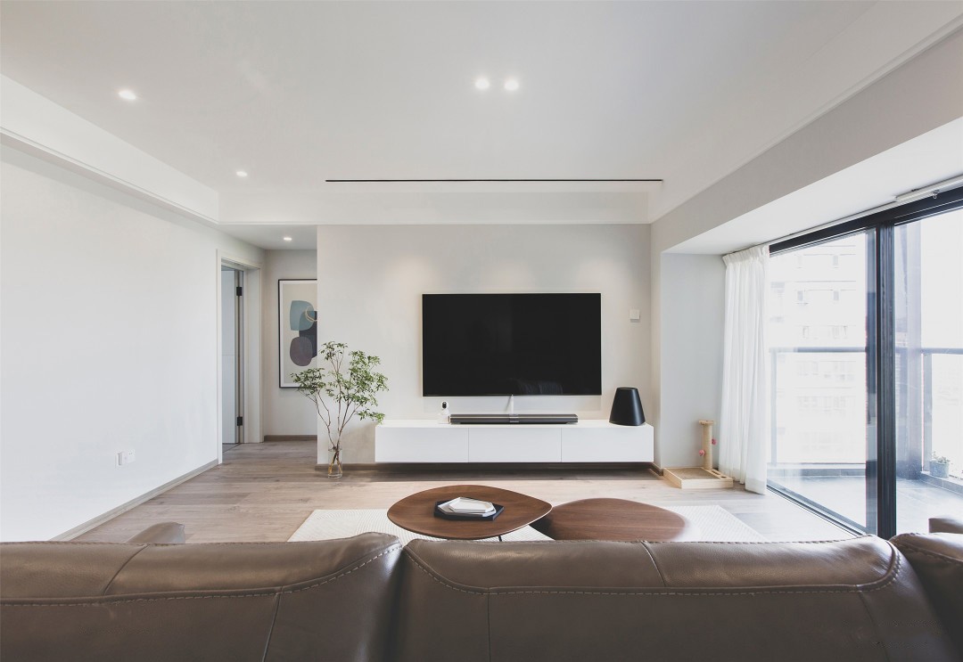 客厅以白色和木色为基础的色调,简洁纯粹。空间的白,简约有风格,电视机的黑,处处弥漫着静谧优雅的氛围,呈现了夫妇俩不凡的生活品味。