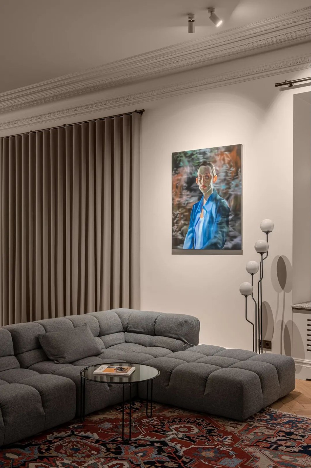 这套200㎡的公寓既是艺术的主角,也是艺术的配角。业主热衷艺术收藏,整个公寓的墙壁上都挂满了世界各地年轻艺术家的作品。