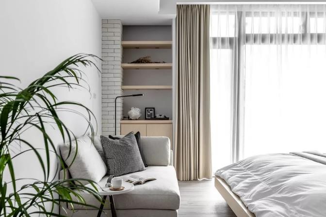 浅色系作为空间主色,通过颜色的明度增加室内空间的通透性和亮度,给人豁然开朗的视觉印象。轻柔、舒缓的空间氛围更能够抚慰我们的内心,静享生活的安逸时光。