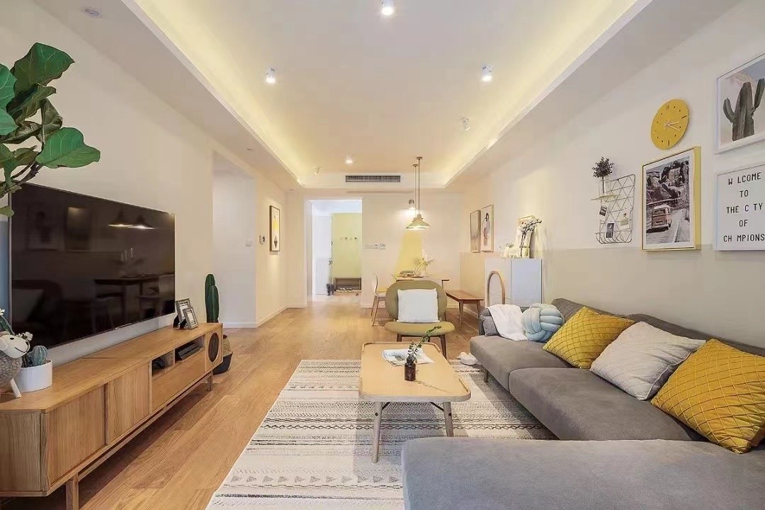 99平原木风,三室两厅两卫客厅
