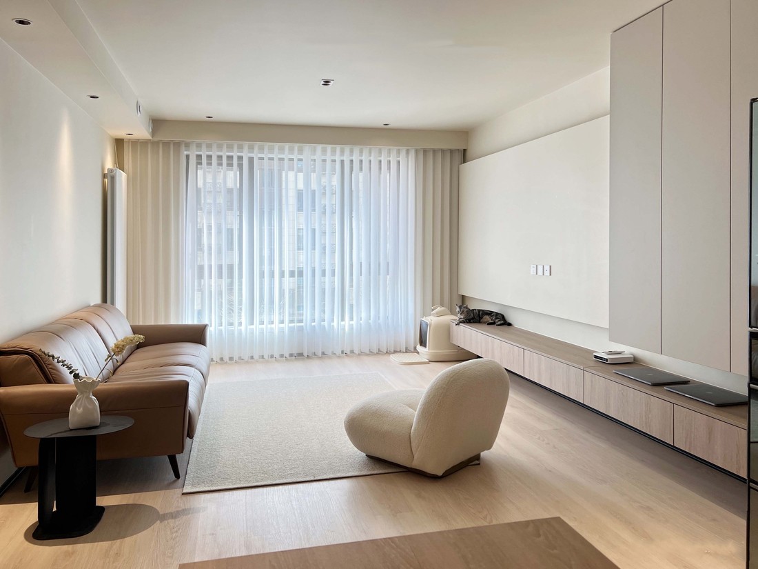 1、将原本开发商设置的阳台墙体拆除,全部纳入客厅空间,使客厅看起来更加的宽阔而且超大的窗台让客厅拥有充足的光线。 2、整个屋子大量布置墙面柜,让柜子与墙面尽可能的贴合,增加屋内储物空间的同时保证各个空间平整,让人视觉上感觉更加的舒适。 3、卫生间部分做了干湿分离,盥洗区与洗漱卫生区作区分,可以保持干净卫生、浴室整体美观,还可错开使用时间、提高安全性。