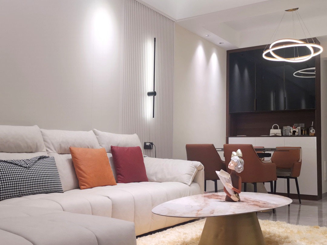 注重品质感的屋主,在整个无主灯的房屋内使用智能家居,是锦上添花的选择,它会根据屋主的需求,如观影、就餐等来进行灯光的色温和亮度切换,贴心度直击内心。